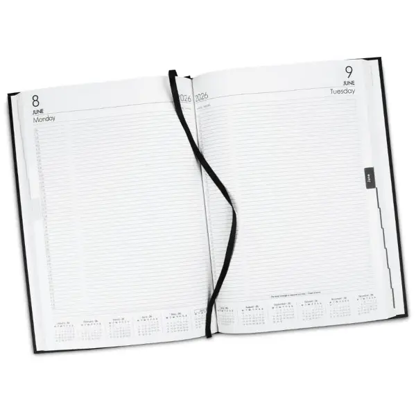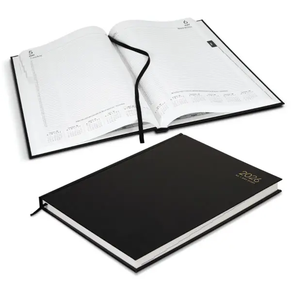 This Collins 2026 A4 diary spans from January to December, showing a day format with 15 minute appointment times. It's hard cover and features a personal information page, monthly planners, school terms and more. Personalisation available at extra cost.