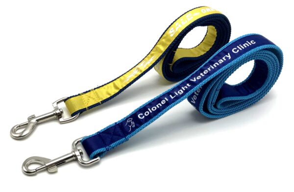 Our 25mm Swish Dog Leads are in a class of their own and are made from durable polyester with silk ribbon sewn along the length. These premium quality dog leads are perfect for brand awareness or promoting that special message, and are popular with veterinary clinics, animal hospitals, dog clubs, councils and dog obedience schools. They can be manufactured to any Pantone colour and are supplied with quality carabiner hook clip.