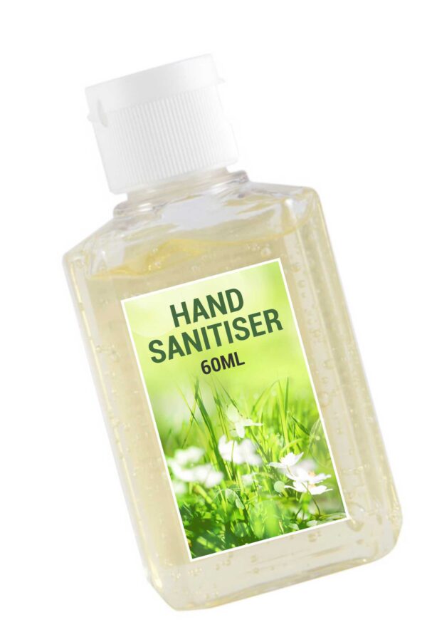 The 60ml Hand Sanitiser 60ml is an alcohol based clear gel hand sanitiser with moisturiser and Vitamin E in clear plastic squeeze bottle. Kills most germs and leaves hands feeling refreshed and clean. 60% alcohol content. The compact size is small and handy to carry in a handbag.