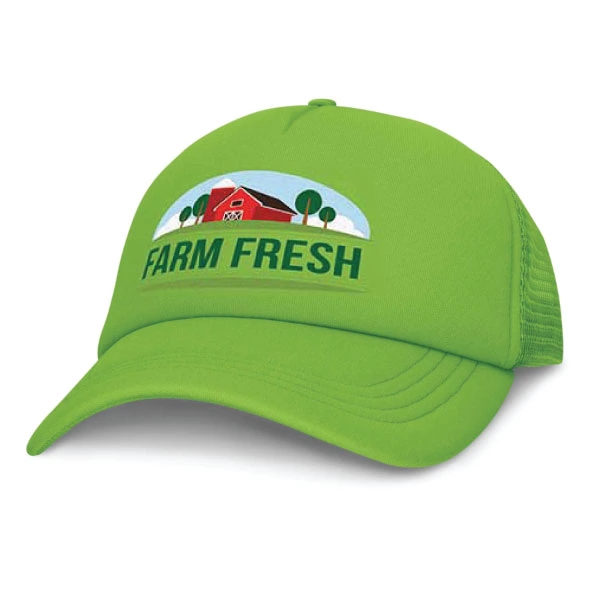 The Aero Trucker Cap is a premium quality, structured five panel trucker style cap with a padded polyester front and breathable mesh on the side and back panels. It has a pre-curved peak, a sweat band and an adjustable snap back closure which allows one size to fit most people.