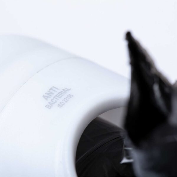 The Antibacterial Waste Bag Dispenser has resistant body in a solid finishing. It features carrying carabiner in matching color, with 15 biodegradable bags included. Presented in an individual bag. Products with antibacterial treatments are able to drastically reduce the bacterial levels present on the surfaces of the materials, thanks to the addition of permanent static microbial agents, with high effectiveness in inhibiting and preventing bacterial contamination. Item according to the ISO 22196 standard, which determines the antibacterial activity in plastic materials and non-porous surfaces. This allows us to know the effectiveness of microbial inhibition that additives have on treated objects by means of a quantitave evaluation. 15 biodegradable bags Included.