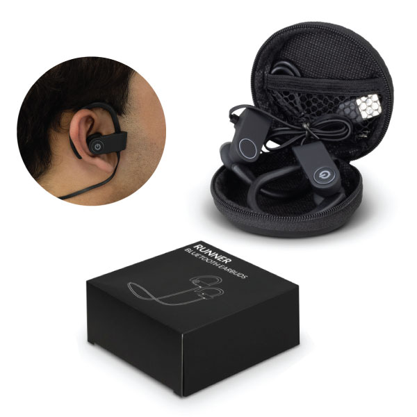 Stay active and listen to your favourite music with the Arlo Bluetooth Earbuds and Carry Case. These earbuds last for up to 10 hours and are comfortable with their silicone ear hooks and neck strap. You can easily control your calls and music with the built in controls. The earbuds are supplied in a convenient carry case with a charging cable and instructions.Â