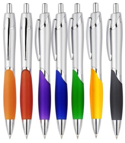 The Benson Silver Plastic Pen features a silver coloured barrel, coloured rubber grips and chrome plated trims. The elegant style of these promotional plastic pens are ideal for promoting your business and leaving a lasting impression. It also includes a 1.0mm ballpoint ink refill.