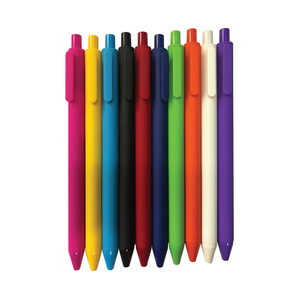 Get writing with our unique click action Cressida Rubber Pens! They are made out of plastic coated rubber and come in 10 vibrant colours. You can choose to have either black or blue ink.
