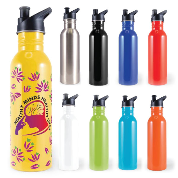The Cronulla Stainless Steel Bottle is a 800ml lightweight stainless steel drink bottle with leak proof lid. Choice of 2 lid styles - Flip up with straw lid or sipper lid. Available in a bright range of fashion colours.This drink bottle is intended for cold use only, not suitable for carbinated liquids or freezing. Handwashing recommended.