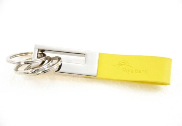 The Custom Split Leather Keyring is made from zinc alloy which has a white finish, split leather and 3 x 25mm split rings.