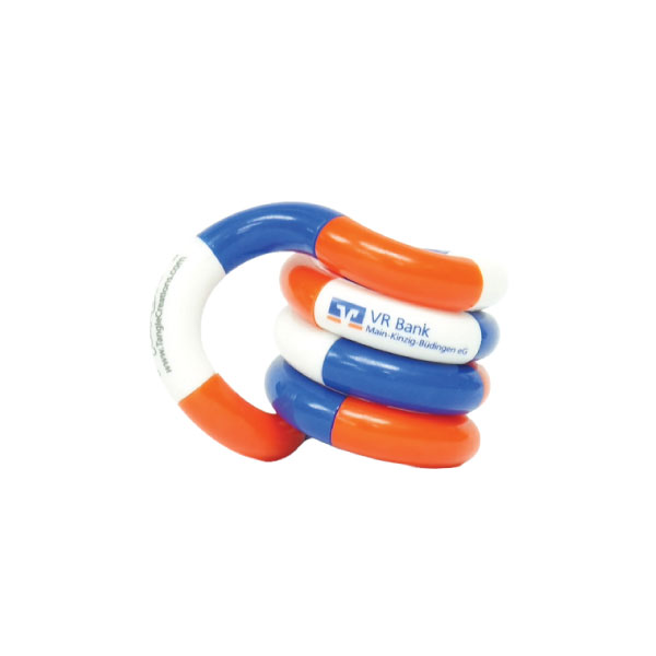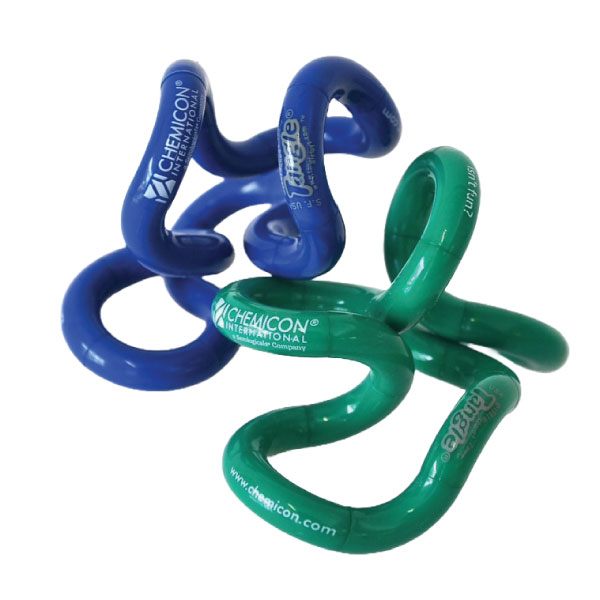 This unique and interactive coiled toy has 18 sections and is made with 100% pre-consumer recycled plastic. It's FDA approved and used by NHS for fidget therapy. This is priced for a single custom PMS coil colour & 1 colour print on 4 sections (Tangle logo printed on 1 section). Contact us for 2 or 3 coloured coils and multiple print colours.