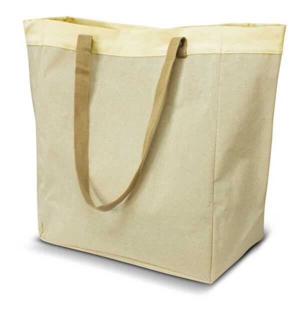The Ellenbrook Linen Tote Bag is an extra large tote bag with a gusset which is ideal for carrying bulky items. It has long woven carry handles so it can be comfortably carried on a shoulder and they are secured with brass rivets for added strength. Market Tote is manufactured from natural laminated linen with unbleached natural calico trim around the top.