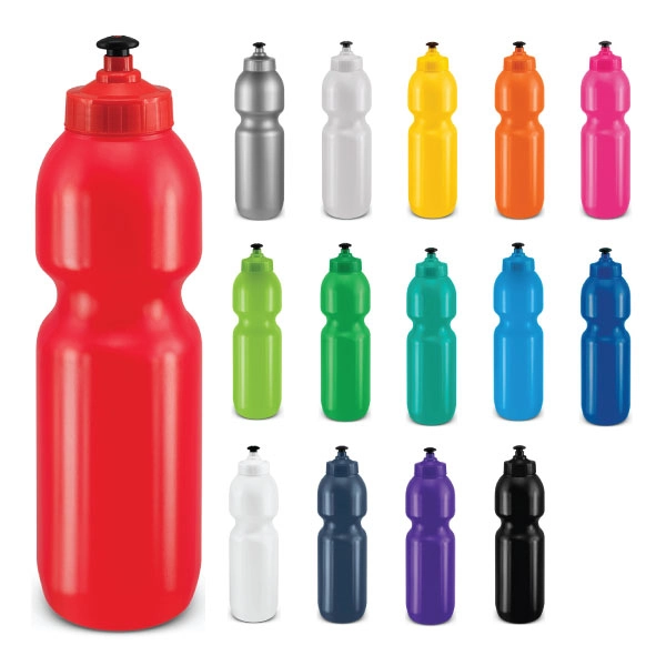 Our Evans Drink Bottle is a BPA-free 800ml drink bottle that is manufactured from food grade polyethylene. It has a reliable screw on lid with a leak-resistant sipper mechanism. The bottle and lid can be mixed and matched in any colour combination from the colour palette at no extra cost. This product is not dishwasher safe and handwashing is recommended.