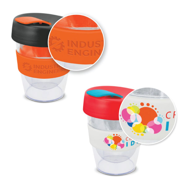 The Hamilton Double Wall Cup - 230ml is a reusable double wall coffee cup which will keep drinks hot for longer. It has a silicone band and a secure screw on lid with a splashproof flip closure. The lid, flip closure and band can be mixed and matched in any colour combination from the colour palette at no extra cost. An optional black gift box is available on request. This product is not dishwasher safe and handwashing is recommended.
