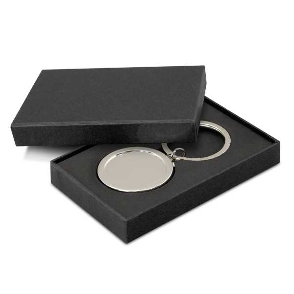 The Honky Tonk Bottle Opener Keyring is a unique key ring shaped like a bottle cap with a bottle opener on the reverse. It has a plated shiny chrome finish which laser engraves to a natural etch and is presented in a black gift box.
