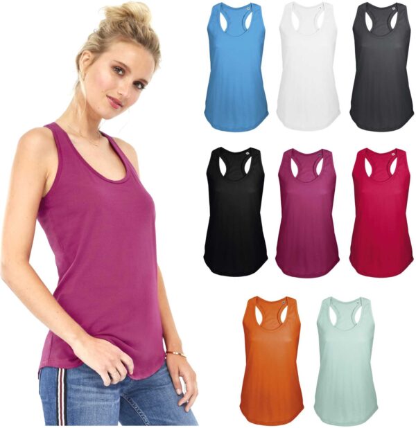 The Koma Ladies Racerback Singlet is 100% ring spun combed cotton jersey and is available in a wide range of fashionable colours. They feature racerback styling with curves hem which is ideal for all sporting and physical events.