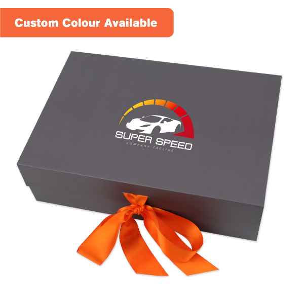 This large foldable box is a great showcase for your business. The outside of the box can be fully customised with your brand colours & logo. The box includes a magnetic closure to keep everything inside secure. Finished off with a ribbon for that extra pizazz! Check out our listing for the medium & small boxes if you prefer something a bit smaller