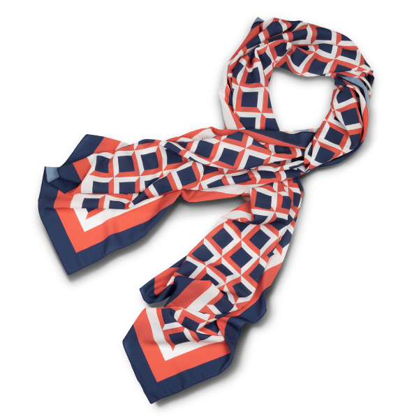 This luxury scarf is made from 70gsm crepe fabric so will hang beautifully when worn. The scarf can be printed in a full colour print and the lock edging can be closely matched with the colouring in the scarf.