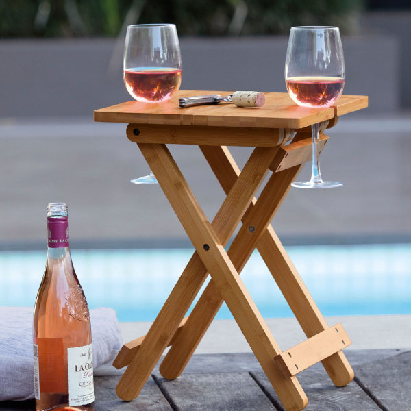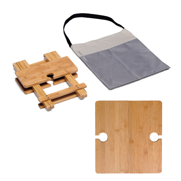 This Tavolo table is perfect for alfresco dining and for serving food & drinks in style on the beach! The table is foldable and easy to pop into the supplied carry bag, so you can store it away when not needed or easily carry to your next BBQ or picnic. Made from bamboo the table has 2 handy integrated wine holders and has space for tasty nibbles. Priced here for a 1 colour print on the bag. We can also engrave the table with your logo, so chat with our friendly staff today for pricing. Also check out our Grande Tavolo table if you want something a bit larger.