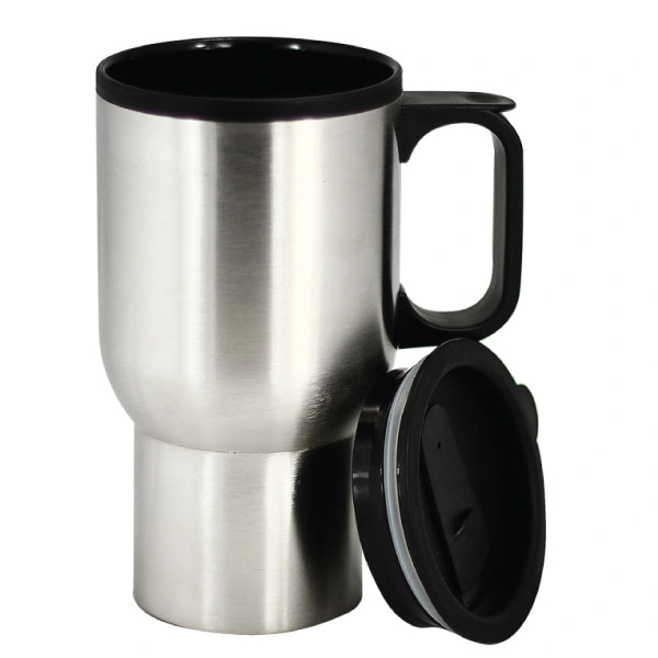 The Norman Stainless Steel Travel Mug is double walled with stainless steel on the outside and plastic inside. The popular design has moulded plastic handle and black lid and with contoured design fits perfectly in most vehicle cup holders. Engraved with your branding, this mug is an affordable and practical gift.