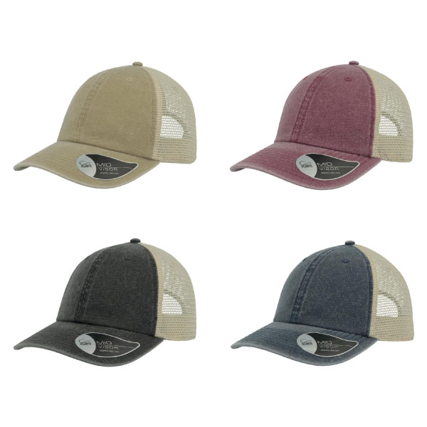 - 100% pigment dyed Cotton Twill fabric - Front panels and peak with 100% Polyester mesh side and back panels