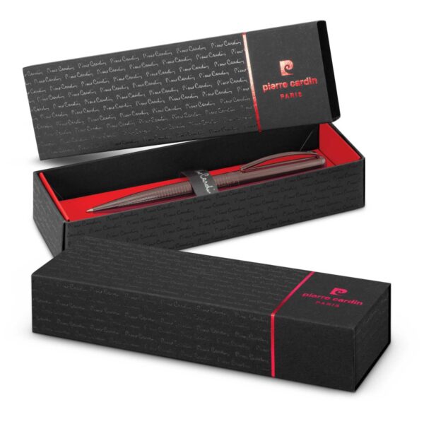 Sophisticated brass ball pen with a silky smooth twist action and stunning electroplated finishes. The lower barrel features a subtle guilloche engraved pattern and the upper barrel laser engraves to a natural etch. It has a black large volume refill with 4000 metres of German manufactured DOKUMENTAL ink and a tungsten carbide ball for improved writing quality. Lyon features the Pierre Cardin logo tastefully engraved on the centre ring and clip. It can be presented in an optional Pierre Cardin sleeve or Pierre Cardin gift box.
