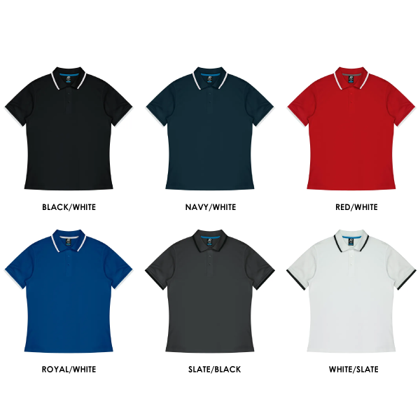 The Portsea polo is made from 80% polyester & 20% cotton. It will keep you comfortable and cool and look great! The shirt has a contrasting striped ribbed collar and is available in 6 classic colours. It also has a Dri-wear antibacterial finish, to keep you fresh all day long. The shirt comes in size 6 up to 26, so your whole team can look great! Priced here for embroidery up to 10,000 stitches. For the male version of this shirt, check out our men's Portsea Polo Shirts.