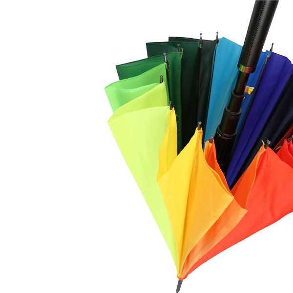 This umbrella will really make you stand out in a crowd! It features 16 different shades of the rainbow, so even in the dullest weather the Rainbow Umbrella will really brighten up the day! The umbrella is made from sturdy fibreglass with a 16 rib frame, so it will keep you sheltered from ultra-strong winds. The shade is made from 190T pongee fabric, which means it’s stronger, tougher and a higher density fabric than traditional nylon and polyester. With the multicolour panels, you can choose which one you would like to print on, and which colour would work best as a background to your logo. Priced here for a full colour print on 1 panel, so you can really make your branding shine!