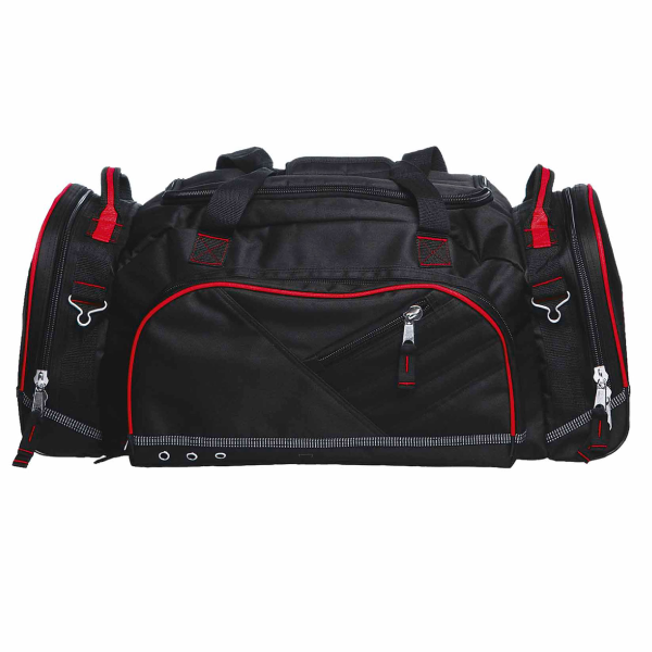 This sports bag is perfect for schools, universities & clubs. It comes in a wide assortment of colours, so there is a colour to suit everyone! The bag has a huge main compartment with an oversized U-shaped opening, which is ideal for large items. It has side and end compartments for all your accessories to be neat and accessible. It has a Velcro wrap carry handle to make carrying heavy items comfortable on your hands. It also has an adjustable padded shoulder strap when you need to go hands free! It has heavy duty oversized zippers and accessories and also rubber feet for added protection.