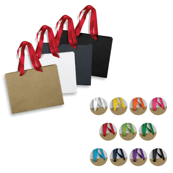 This professional and classy paper bag is made out of 180gsm FSC-certified material and coloured ribbon handles. This bag has a reinforced gusset and top edge for strength. This is perfect for gifting and event giveaways. You can digitally print on the white and natural bags.