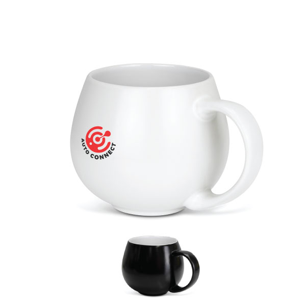 This premium 450ml ceramic coffee mug features a unique round shape which is extremely comfortable to hold, and is presented in an individual black gift box.