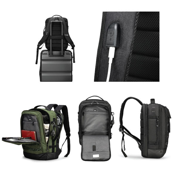 This Swissdigital is a stylish ultra functional backpack with numerous storage options. The bag is super tech friendly with RFID protection pockets, USB charging, padded laptop compartment and many more. Travel easily with a built in trolley sleeve. The back panel has a mesh padding for comfort and air ventilation.