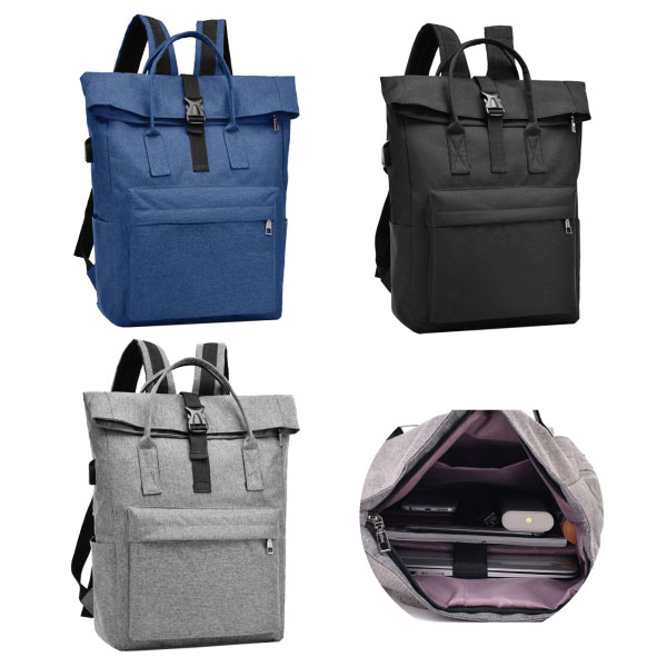 The Venture Laptop Backpack is a modern stylish laptop backpack made from high quality polyester. It has one front zipped pouch, inside has 2 compartments: one for laptop and ipad with black velcro closure strap, this pouch is padded thicker to protect inside laptop and ipad, second small pouch for keys and small items. Two side pockets can hold both drinking bottle or mobile phone. It also features USB charging port with a charging cord attached, and adjustable straps. Bag has a zip closure top, and top part bag can be folded to make the bag smaller and two handles are available for you to carry the bag by hands or over the shoulders.
