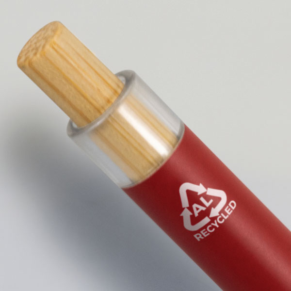 The Waverly Metal Pen is a retractable ball point pen with a recycled aluminium barrel. It features a matte lacquered finish and shiny chrome trim. Comes with black ink refill and has an recycle symbol on the barrel.
