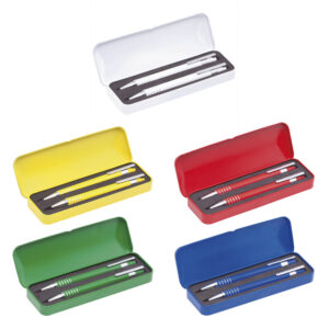 Set of ball pen with push-up mechanism and mechanical pencil in an original bicolor design